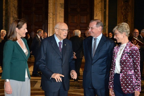 Il Presidente Giorgio Napolitano con la Prof.ssa Silvana Sciarra durante la cerimonia di giuramento dei nuovi giudici della Corte Costituzionale