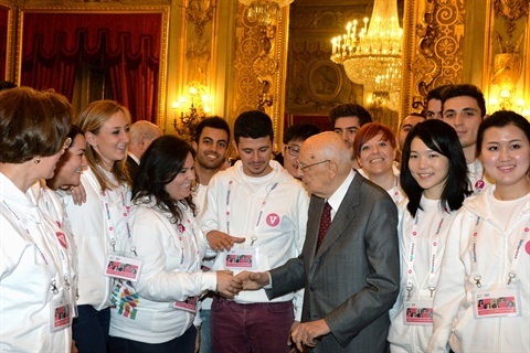 Il Presidente Giorgio Napolitano nel corso dell'incontro con una rappresentanza di giovani volontari dell'Expo di Milano 2015