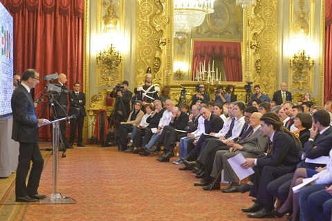 Il Ministro Maurizio Martina, nel corso dell'incontro con una rappresentanza di giovani volontari dell'Expo di Milano 2015