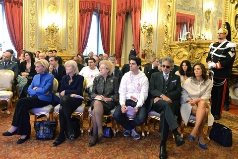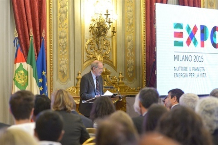 Un momento della cerimonia con i giovani volontari dell'Expo di Milano 2015