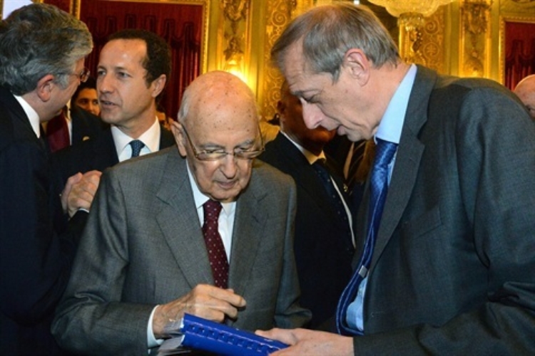 Il Presidente Giorgio Napolitano con Piero Fassino, al termine dell'incontro con i volontari di Expo 2015