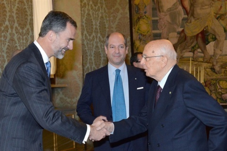 Il Presidente Giorgio Napolitano nel corso dei colloqui con S.M. il Re di Spagna Felipe VI