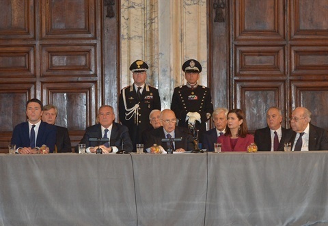 Il Presidente Giorgio Napolitano rivolge il suo indirizzo di saluto in occasione del consueto scambio di auguri di fine anno con i Rappresentanti delle Istituzioni, delle Forze Politiche e della Società Civile