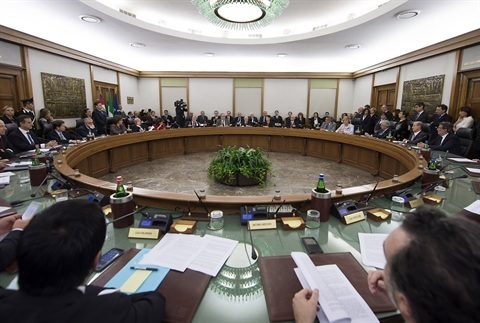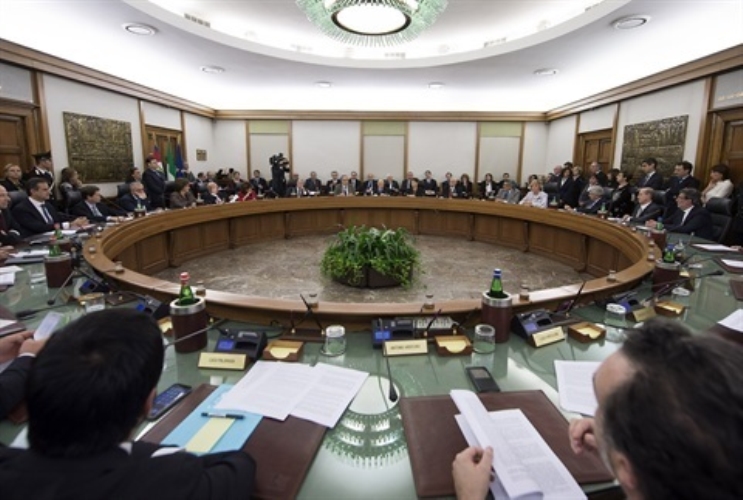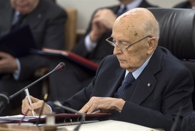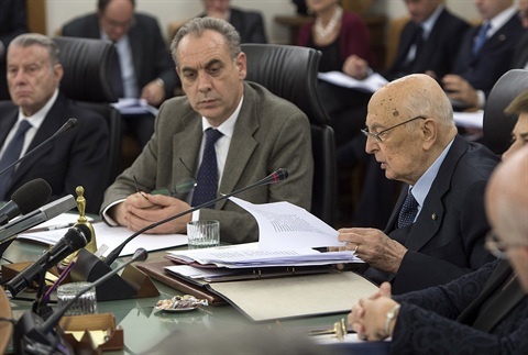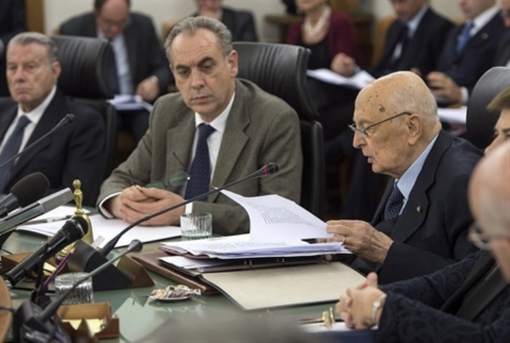 Il Presidente Giorgio Napolitano con a fianco il Vice Presidente del CSM Giovanni Legnini nel corso dell'intervento all'Assemblea plenaria del Consiglio Superiore della Magistratura