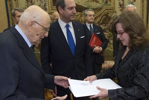 Il Presidente Giorgio Napolitano con S.E. Alba Beatriz Soto Pimentel, Ambasciatore della Repubblica di Cuba, in occasione della presentazione delle Lettere Credenziali