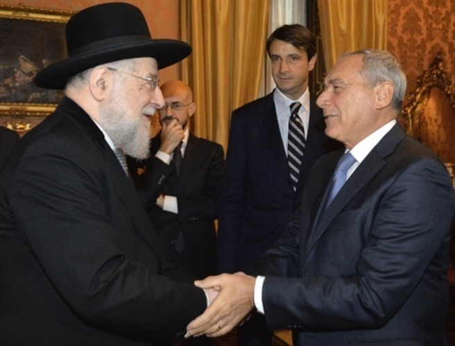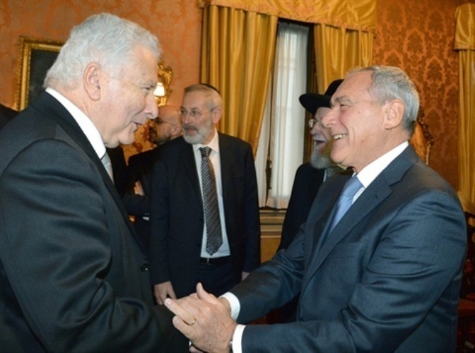 Il Presidente del Senato nell'esercizio delle funzioni del Presidente della Repubblica, Pietro Grasso, con il Rabbino Capo di Tel Aviv e Presidente di "Yad Vashem", Israel Meir Lau