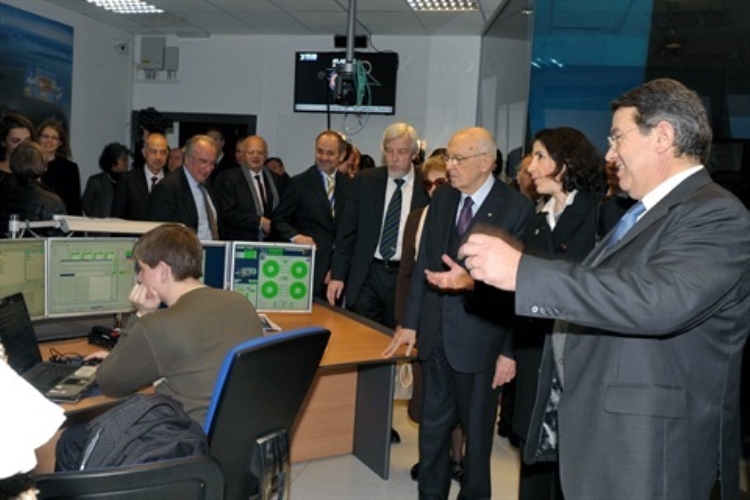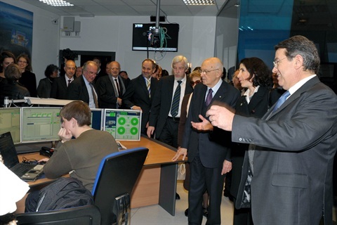 Il Presidente Giorgio Napolitano con i Direttori ed i Capi Dipartimento in occasione della visita al CERN