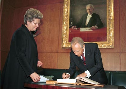 Visita ufficiale in Finlandia - Il Presidente Ciampi, con il Presidente del Parlamento Tiitta Uosukainen, firma il Libro d'Onore.