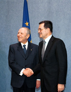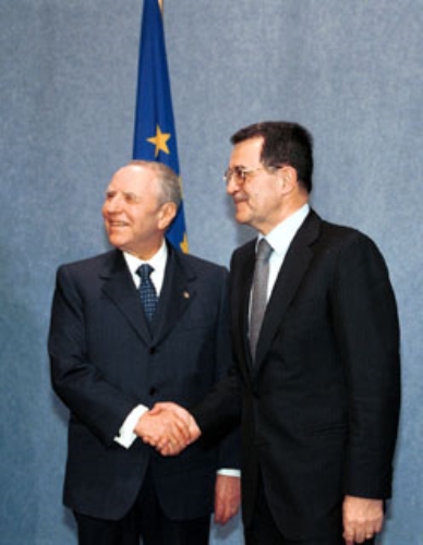 Visita alla Commissione ed al Consiglio dell'Unione Europea - Il Presidente Ciampi con il Presidente dell Commissione Europea Romano Prodi.