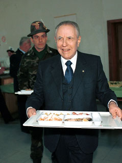Visita in Bosnia-Erzegovina - Il Presidente Ciampi a colazione nella Caserma Tito durante la visita al Contingente italiano.