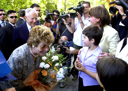Il Presidente della Repubblica e la Signora Ciampi al loro arrivo a Serravalle di Chienti.