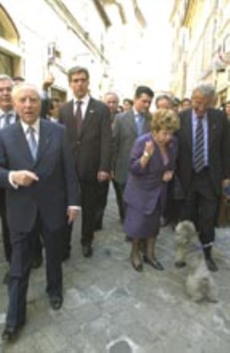 Il Presidente della Repubblica e la Signora Ciampi passeggiano per il centro di Macerata.