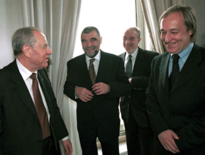 Il Presidente Ciampi con il Presidente della Repubblica di Croazia Stjepan Mesic. A destra l'On. Furio Radin, figura di spicco della minoranza italiana in Istria.