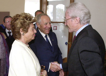Il Presidente Ciampi e la moglie Franca salutati dal Conte Giuseppe Panza al loro arrivo a Villa Menafoglio Litta Panza.