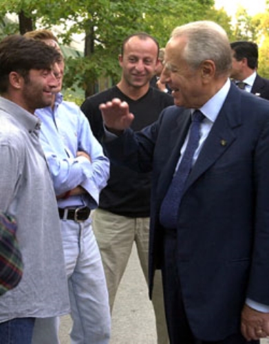 Il Presidente Ciampi conversa con alcuni giovani ospiti della Comunità di San Patrignano.