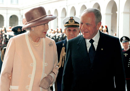 S.M. la Regina Elisabetta II con il Presidente della Repubblica Carlo Azeglio Ciampi durante l'arrivo al Quirinale.