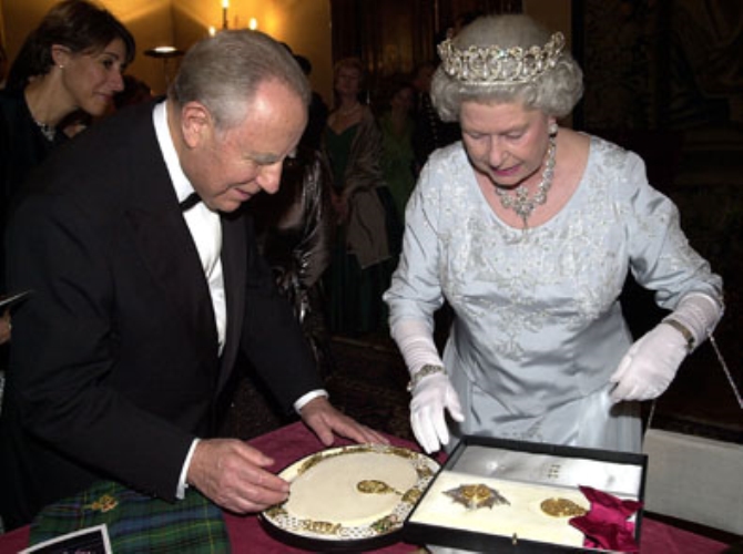 S.M. la Regina Elisabetta II conferisce al Presidente Ciampi la più alta onorificenza britannica (l'Ordine del Bagno) destinata ai Capi di Stato.