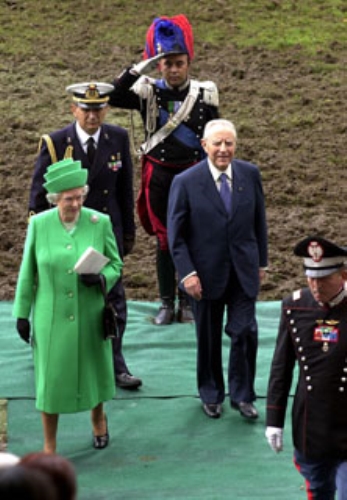 S.M. la Regina Elisabetta II e il Presidente della Repubblica Carlo Azeglio Ciampi al termine del Carosello Storico del Gruppo Squadrone Carabinieri a cavallo.