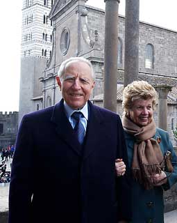 Il Presidente Ciampi con la moglie Franca mentre visita la Curia Vescovile della Diocesi.