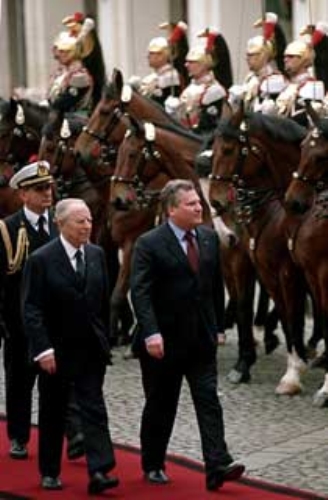Il Presidente Ciampi e il Presidente della Repubblica di Polonia Aleksander Kwasniewski passano in rassegna il Picchetto d'Onore, in occasione della visita di Stato.