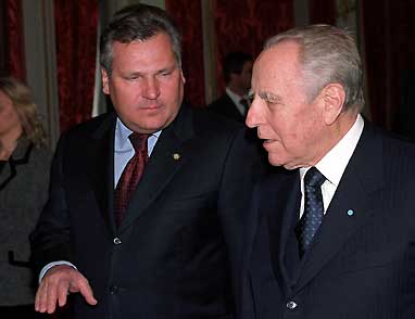 Il Presidente Ciampi e il Presidente della Repubblica di Polonia Aleksander Kwasniewski poco prima dei colloqui.