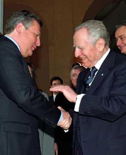 Il Presidente Ciampi e il Presidente della Repubblica di Polonia Aleksander Kwasnieski, al termine dei colloqui.