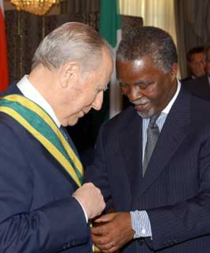 Il Presidente Ciampi riceve, dal Presidente della Repubblica del Sud Africa Thabo Mbeki, il conferimento della Prima Classe dell'Ordine della Buona Speranza.