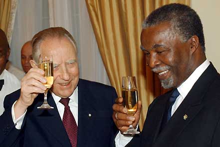 Brindisi tra il Presidente Ciampi ed il Presidente della Repubblica del Sud Africa Thabo Mbeki, in occasione del pranzo ufficiale a PalazzoTuynhuys