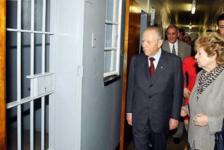 Il Presidente Ciampi con la moglie Franca, all'interno del Penitenziario di Robben Island, davanti alla cella dove fu rinchiuso per 17 anni Nelson Mandela