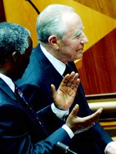Il Presidente Ciampi al termine della sua allocuzione al Parlamento in seduta congiunta,viene applaudito dal Presidente Sudafricano Thabo Mbeki.