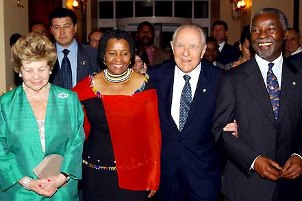 I Presidenti Ciampi e Mbeki con le rispettive consorti al ricevimento di commiato