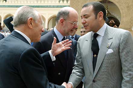 Il Presidente Ciampi saluta S.M. il Re Mohammed VI al termine della cerimonia di commiato a Palazzo Reale