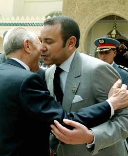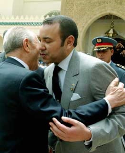 L'abbraccio tra il Presidente Ciampi e S.M. il Re Mohammed VI al termine della cerimonia di commiato a Palazzo Reale