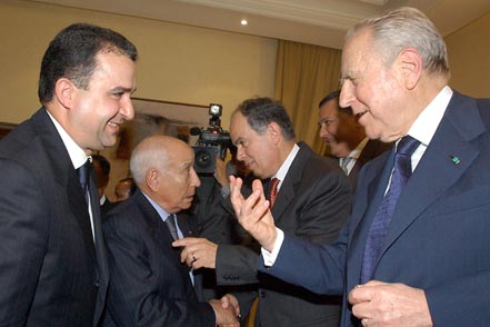 Il Presidente Ciampi si intrattiene con il Presidente della Piccola e Media Industria marocchina, al termine dell'incontro con gli imprenditori italiani e marocchini