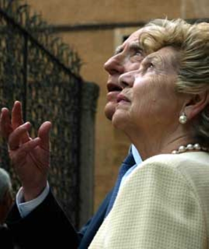 Il Presidente Ciampi con la moglie Franca osservano l'Arco Scaligero, durante la visita alla città di Verona