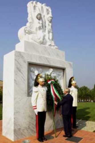 Il Presidente Ciampi depone una corona ai piedi del monumento in memoria dei Combattenti della Toscana caduti in guerra.