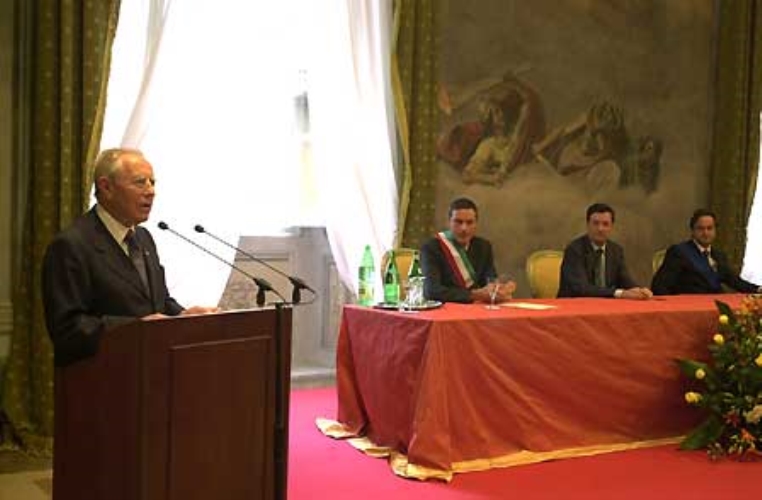 Il Presidente Ciampi durante il suo intervento in occasione dell'incontro con le Autorità Politiche Civili , Militari ed i Sindaci della Provincia.