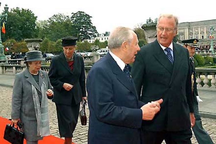 Il Presidente della Repubblica Carlo Azeglio Ciampi con la moglie Franca, in visita di Stato in Belgio, insieme alle Loro Maestà Alberto II e Paola del Belgio.