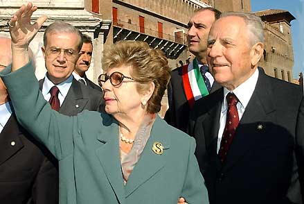 Il Presidente Ciampi con la moglie Franca, durante la breve passeggiata al centro città
