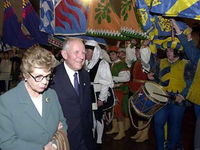 Il Presidente Ciampi in compagnia della moglie Franca al suo arrivo in Piazza del Campo.