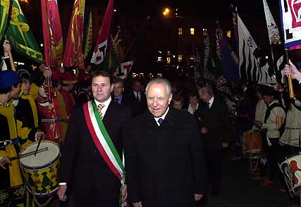 Il Presidente Ciampi con il Sindaco della città Maurizio Cenni al suo arrivo al Palazzo Pubblico.