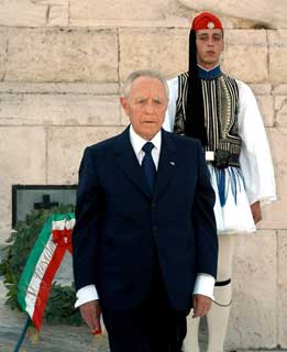 Il Presidente Ciampi subito dopo aver reso omaggio al Monumento al Milite Ignoto, in occasione della visita di tre giorni ad Atene.
