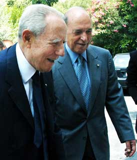 Il Presidente Ciampi con Costas Simitis, Primo Ministro della Repubblica Ellenica, al suo arrivo a Palazzo Maximos.