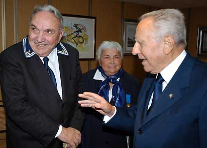 Il Presidente Ciampi si intrattiene con Luciana e Pierpaolo figli della Medaglia d'Oro Carlo Bergamini.