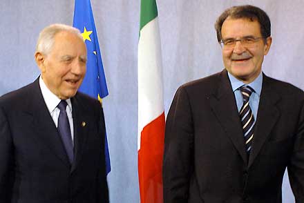 • Il Presidente Ciampi accolto a Palazzo Breydel da Romano Prodi, Presidente della Commissione Europea