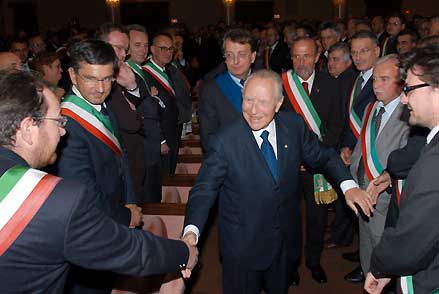 Il Presidente Ciampi saluta i Sindaci della Provincia al termine del suo intervento al Teatro Comunale
