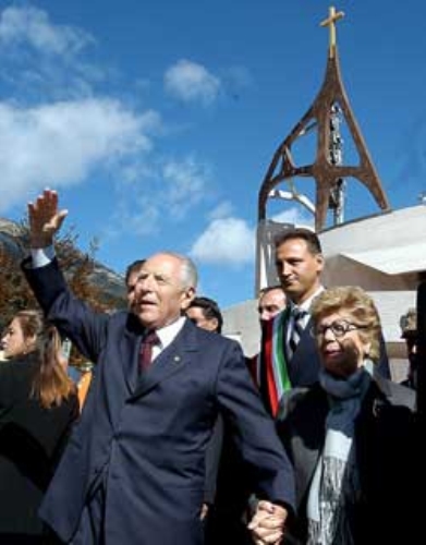Il Presidente Ciampi con la moglie Franca saluta i cittadini presenti al termine della Santa Messa nella chiesa monumentale