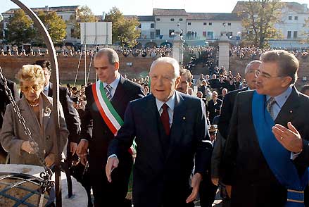 Il Presidente Ciampi in compagnia della moglie Franca e delle Autorità locali durante la visita a Villa Padoer