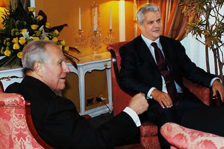 Il Presidente Ciampi con Adrian Nastase, Primo Ministro di Romania, durante il colloquio, a margine, della colazione in onore del Capo dello Stato