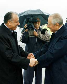 Il Presidente Ciampi salutato dal Presidente della Repubblica Rumena Ion Iliescu, al termine della visita di tre giorni in Romania